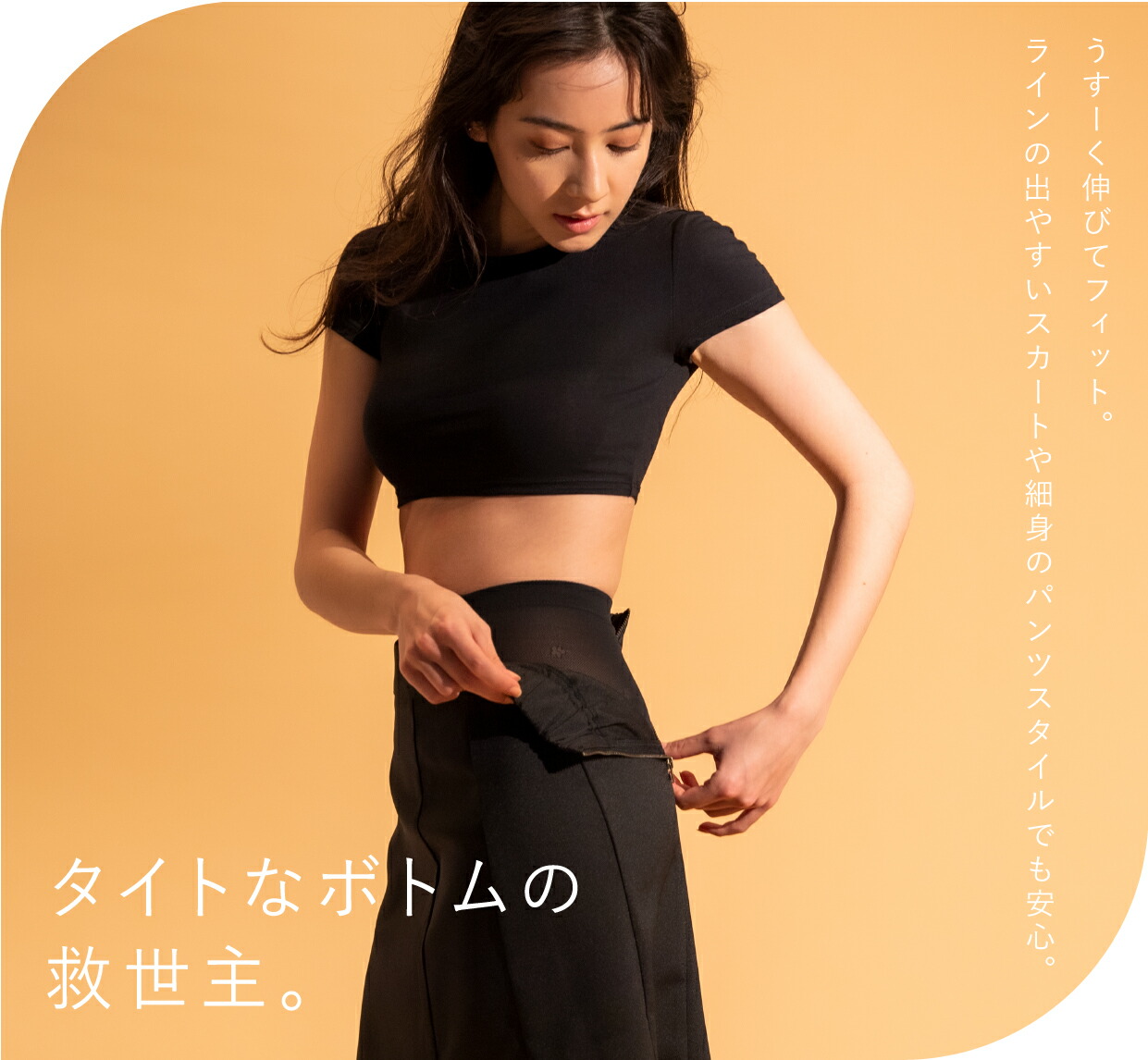 これの上にパンツスーツやタイトスカートを履くと普段のスタイルと全く違います!お尻のラインが自分のお尻じゃないみたいです!買い続けます。