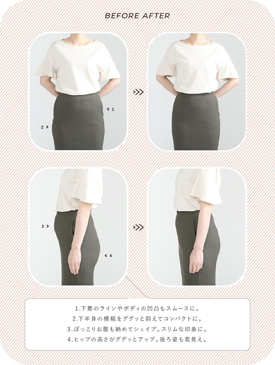 これを履いてパンツを履いた姿は綺麗で、久しぶりに会った人からスリムになった?と言われて嬉しかったです。気合い入れて引き締めたいなら64サイズも買おうかと思います!