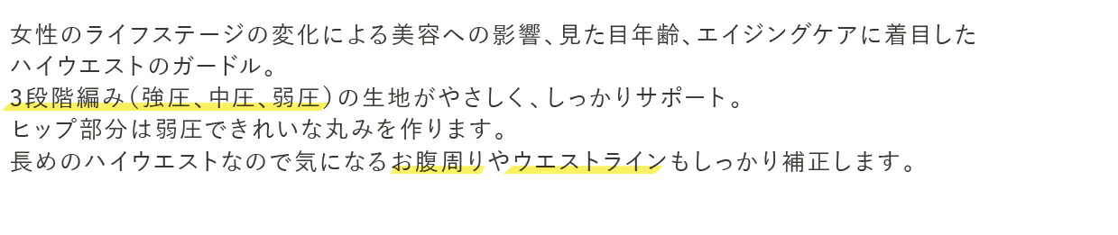 ハイウエストがすごく良くてお肉も気にならずはけます。初めはキツすぎてびっくりしましたが2回目からはすんなりはけました。お腹のお肉も多少なくなります。