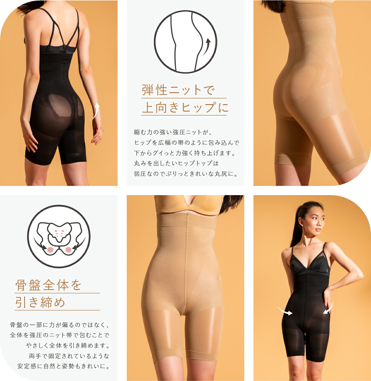 スーパーハイウエスト助かります。ブラトップのアンダー部分まであり、スッキリとまとまります。ヒップは上がり、太ももも締まり、お腹の部分もスッキリです。外出時のお手洗い時も楽で、とても助かってます。ブラックMサイズ愛用。季節的にベージュMサイズを買い足しました。外出時にパンツを履く時に履いてます。