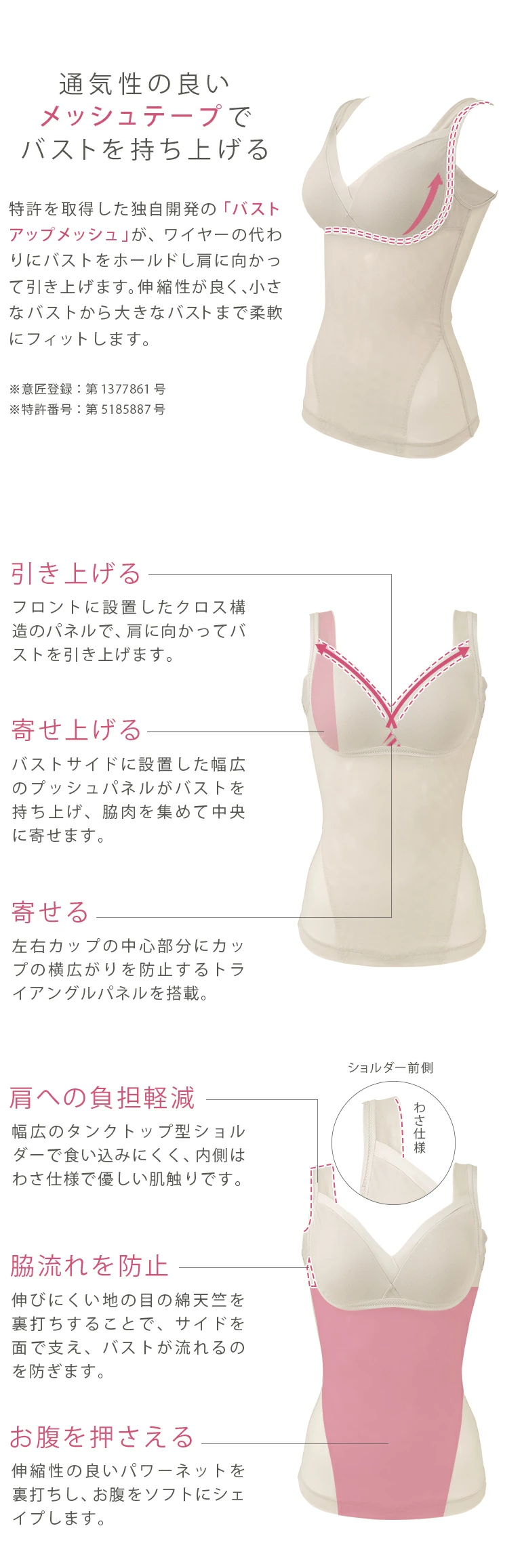 ブラデリス ハッピー バストアップ フィット ブラキャミ ボディスーツ ボディシェイパー 補正 補整 下着 ノンワイヤー ブラトップ カップ付き キャミ ナイトブラ タンクトップ 大きいサイズ