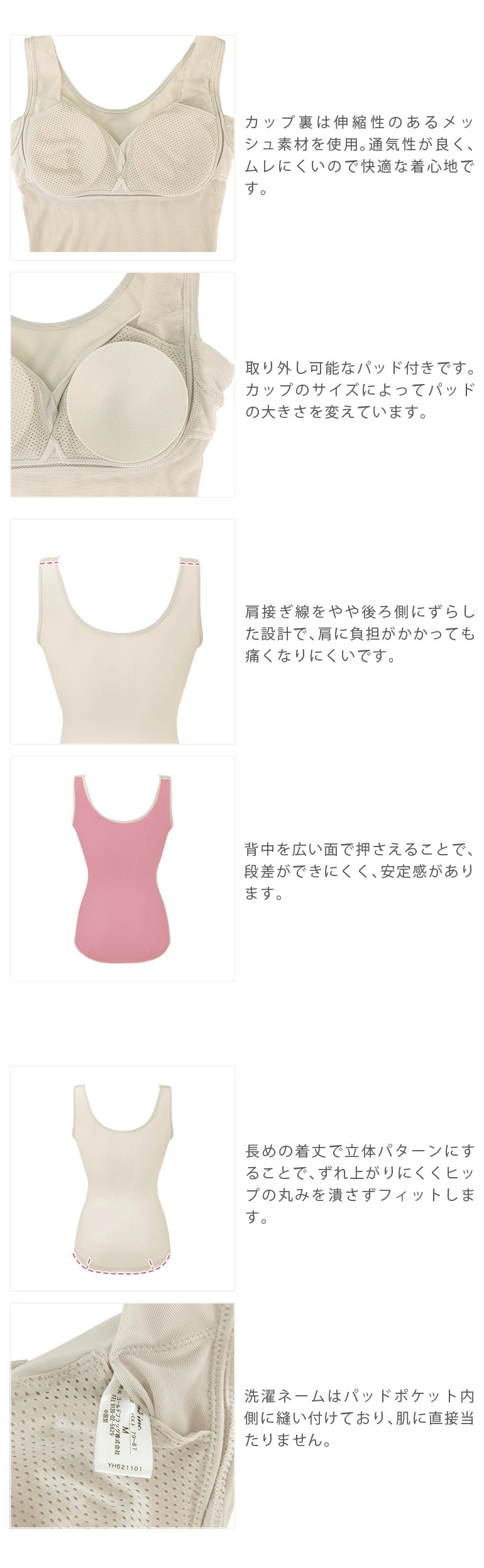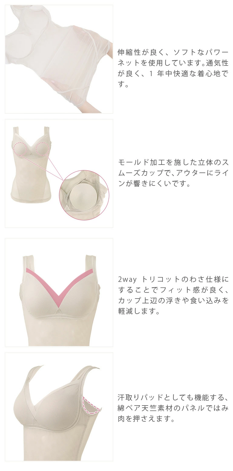 以前から使用させて頂いています、やはりこの商品が1番着やすく体型のラインを無理なく補正してくれると感じます、今回色違いと素敵な地模様の入ったものと購入しました、とても良いです