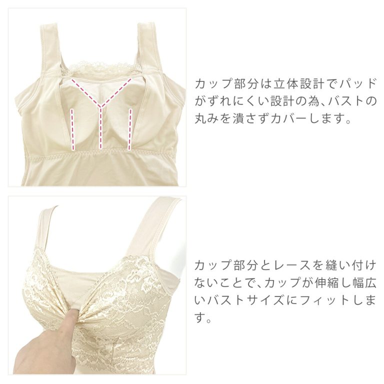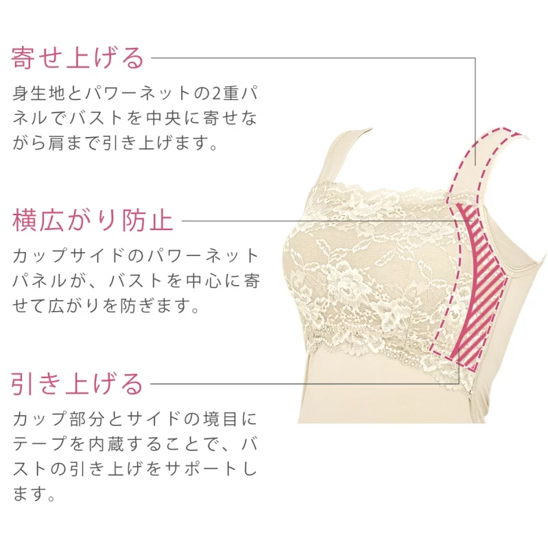 いいです。胸はしっかりサポートしてるのですが、お腹のサポートはないです。…Moreバタークリーム色を注文しました。オフホワイトをイメージしていましたが、見た感じベージュっぽい色です。色は自分としてはイマイチですが、そんな不満を打ち消すほどの肌触りの良さ。手に取った感じから着心地まで生地の触り心地がとっても