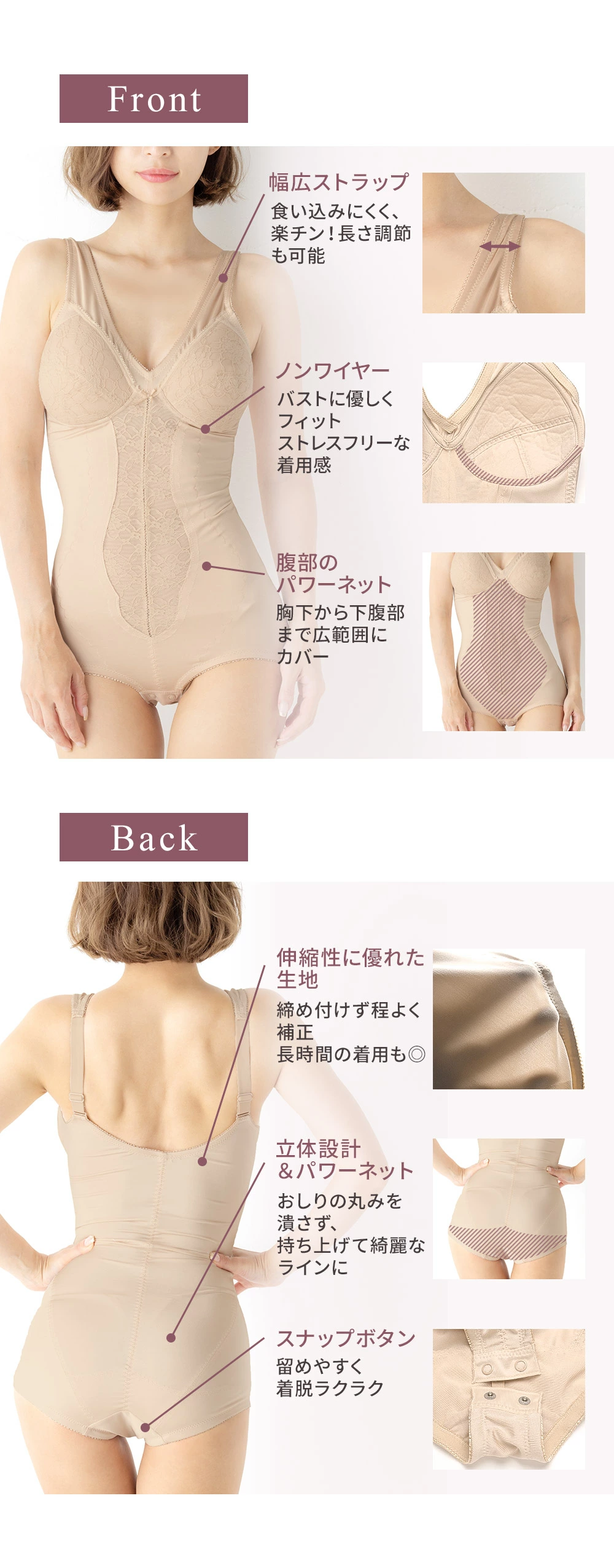 ボディスーツとしてわ良い商品、だと思います、伸縮性があり、肩が凝ることもなく、良いです、お腹おさえは伸びが良すぎて、いまいちですが良い商品、だと思います。