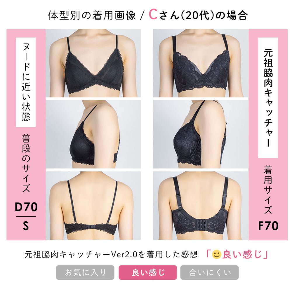先日F70を買って、まだ流れた肉(年齢的にも皮か…笑)が入るぞ!って感じだったので、もうワンカップあげてみました。 かなり痩せてしまったのですが、しっかりキャッチしてくれて、綺麗に納めてくれました。 本当にここのブラがNo.1です。