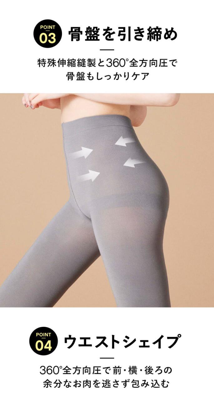 | ご使用方法 | 1.ウエスト側からクルクルとめくり、片足ずつ膝まで履いてください。 |